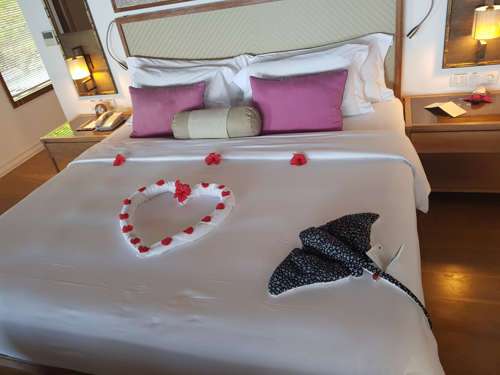 룸타입을 2군데를 경험할 수 있었는데 저희가 예약한 것은 워터빌라로, 오션과 비치 빌라 사이 중간급이었어요. 그런데 스노쿨링하기 좋았던 500번대로 배정받아 실컷했구요. 개인풀장도 바다가 보이는 곳이라 풀빌라 느낌이 물씬 났구요. 마지막날 체크인 할 때 워터빌라 새 방에 잠깐 머물 기회가 있었는데 이곳은 이곳 나름대로 숲 속에 온 듯한 느낌적인 느낌이 났고
