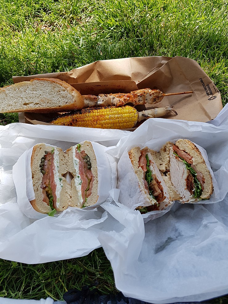 아침에 일어나 에싸베이글가서 베이글 포장후 센트럴파크가서 잔디밭에 앉아 먹었는데 여유롭고 정말 맛있었습니다.