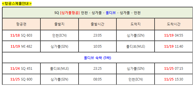 저희부부는 11월18일 11시 대전에서 식을 끝내고 밤23:05분 당일로 가는 스케쥴을 선택했습니다.