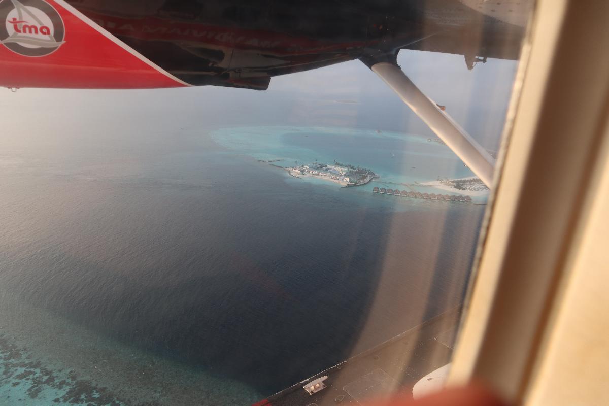 만나 수상비행기 수속하고 버스를 타고 15분간 이동하여 선시암 라운지에서 웰컴 드링크를 마신 후 30분 대기하다가 수상 비행기 타고 45분 이동하니