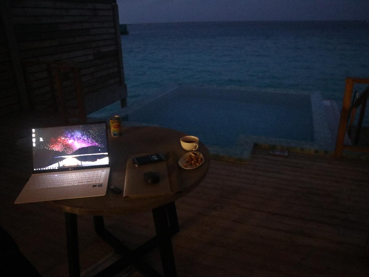 경유지 대기까지 포함해 17시간이 넘는 비행 끝에 말레 공항에 도착하였고, 공항 리조트 부스에서 바로 이루벨리 직원을