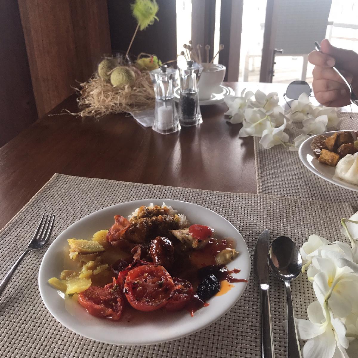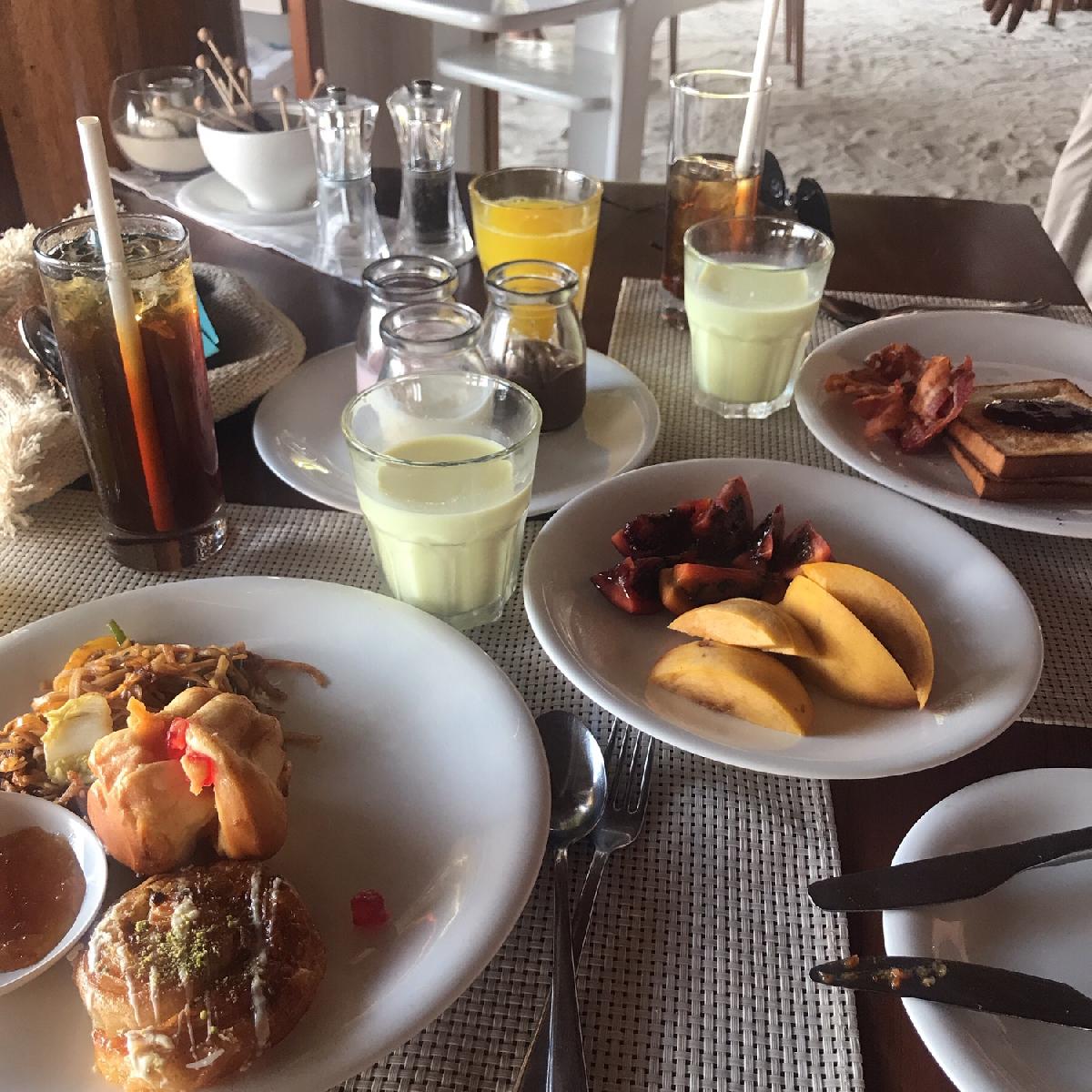 여긴 마티파루입니당 (오전에 11시쯤 도착해서 리조트측에서 늦은 조식을 먹게해줬어요) 그리고 억센비가왔어요.........또르르.....