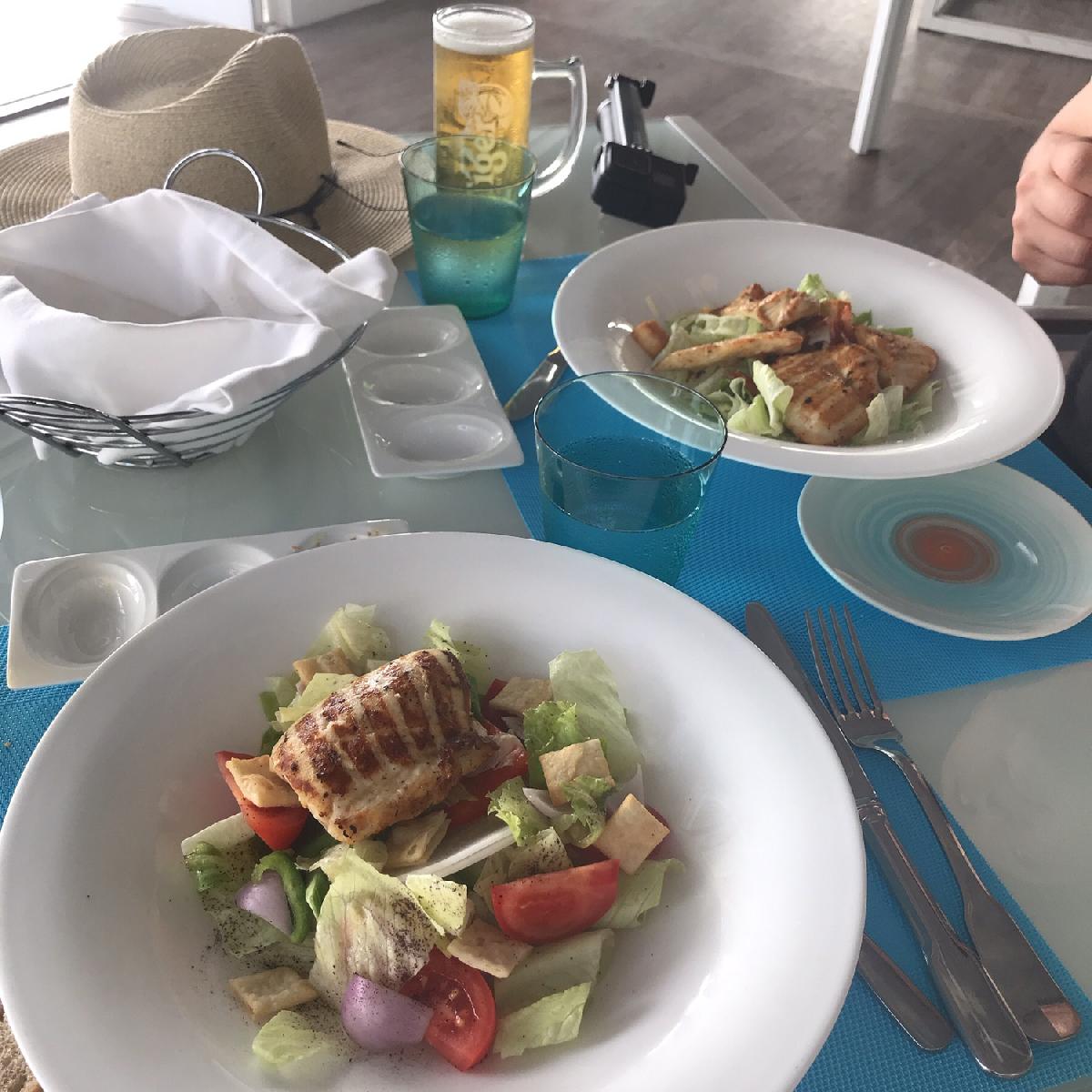 짐정리하구 바로 점심먹으러 선셋풀카페왔어요ㅎㅎ저게 에피타이저 샐러드에요! 양보세요ㅋㅋ 맛있었어요 !!