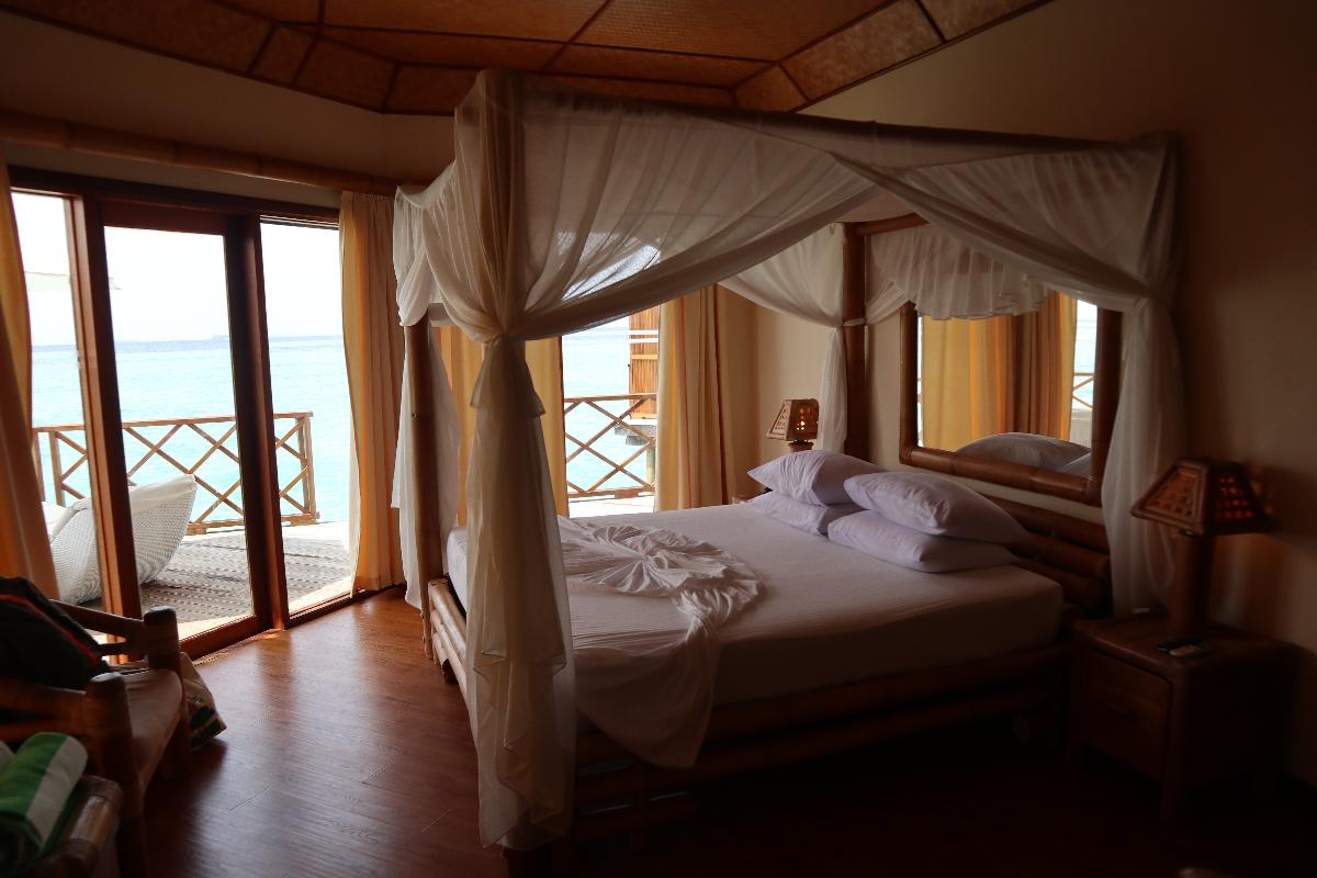 첫날에 방 사진 하나 찍어놨는데 이 날 좀 흐렸어요. 널직하고 화장실도 넓고 시설 불편함 없었어요! 저는 나무 인테리어 좋아해서 더 좋았습니다. 몰디브왔으니 물위에서 자야할것 같아서 4박내내 워터방갈로에 지냈었는데 툴하기리 비치빌라도 고즈넉하고 괜찮다고 해서 섞어서도 알아봤음 좋았을까 싶었어요.