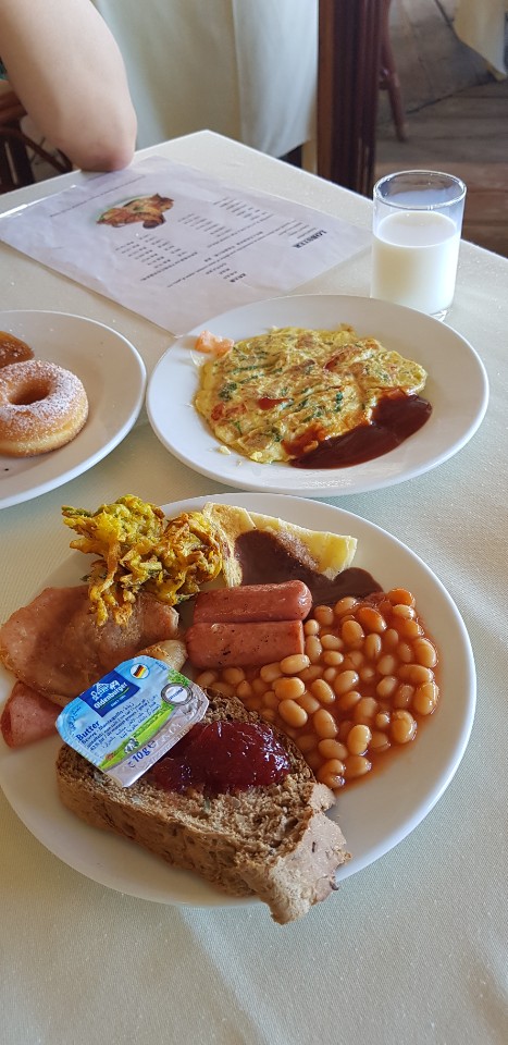 조식먹으러 가는길. 여기가 식당이쪽이에요. 밖에서 먹을수도 있는데 다 방호수 지정해놓은곳 식탁에 앉어서 드세요. 여기가 풍경은 좋은데 파도가 쎄고 시끄러워요ㅋ