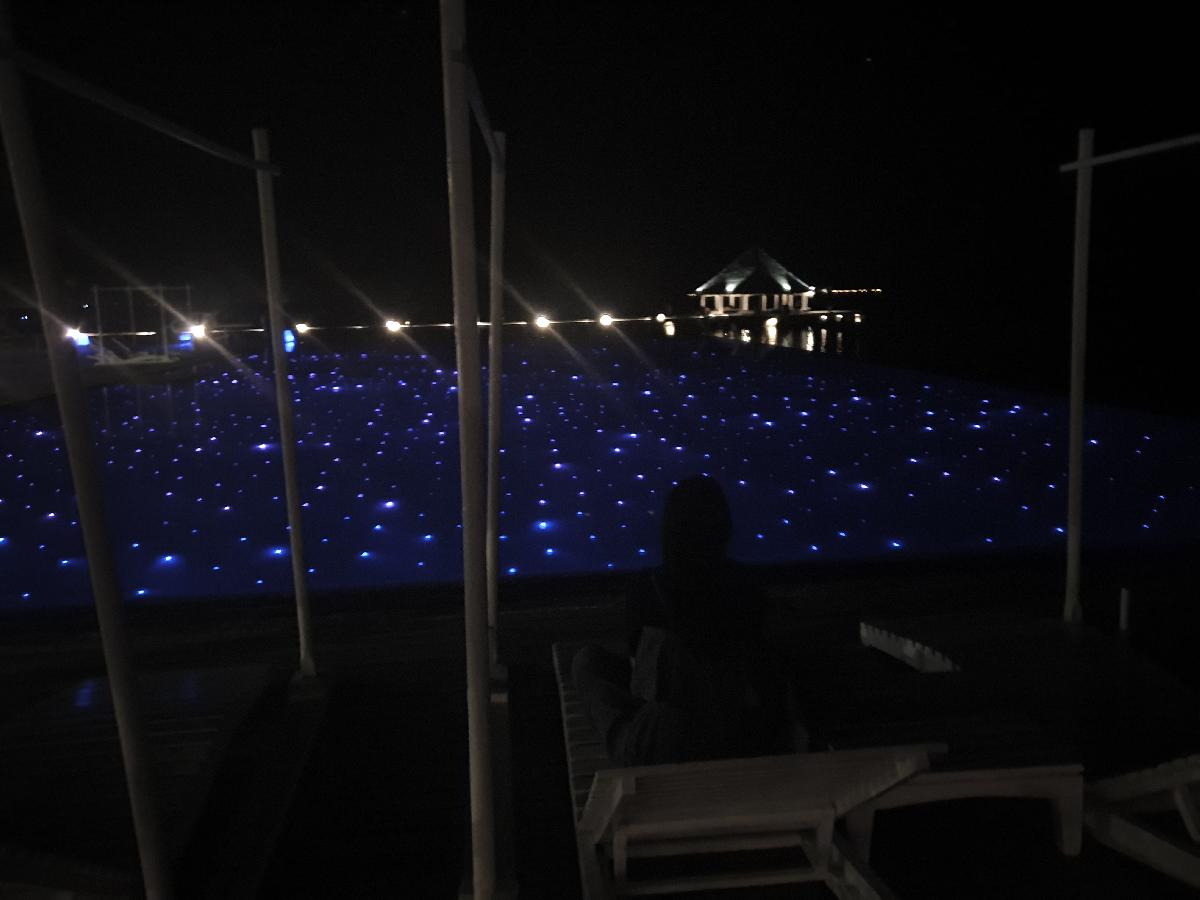 밤에는 수영장이 이렇게 반짝반짝 거리기도 합니다.