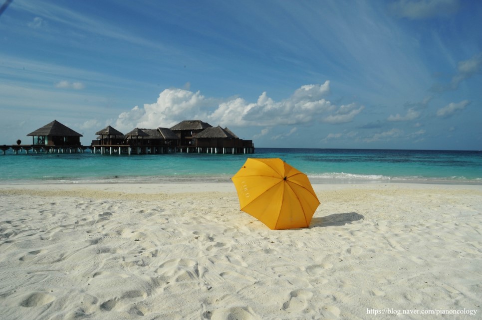 몰디브는 바다로 둘러쌓인 조그만 섬 하나에 리조트가 하나씩 들어가 있다.