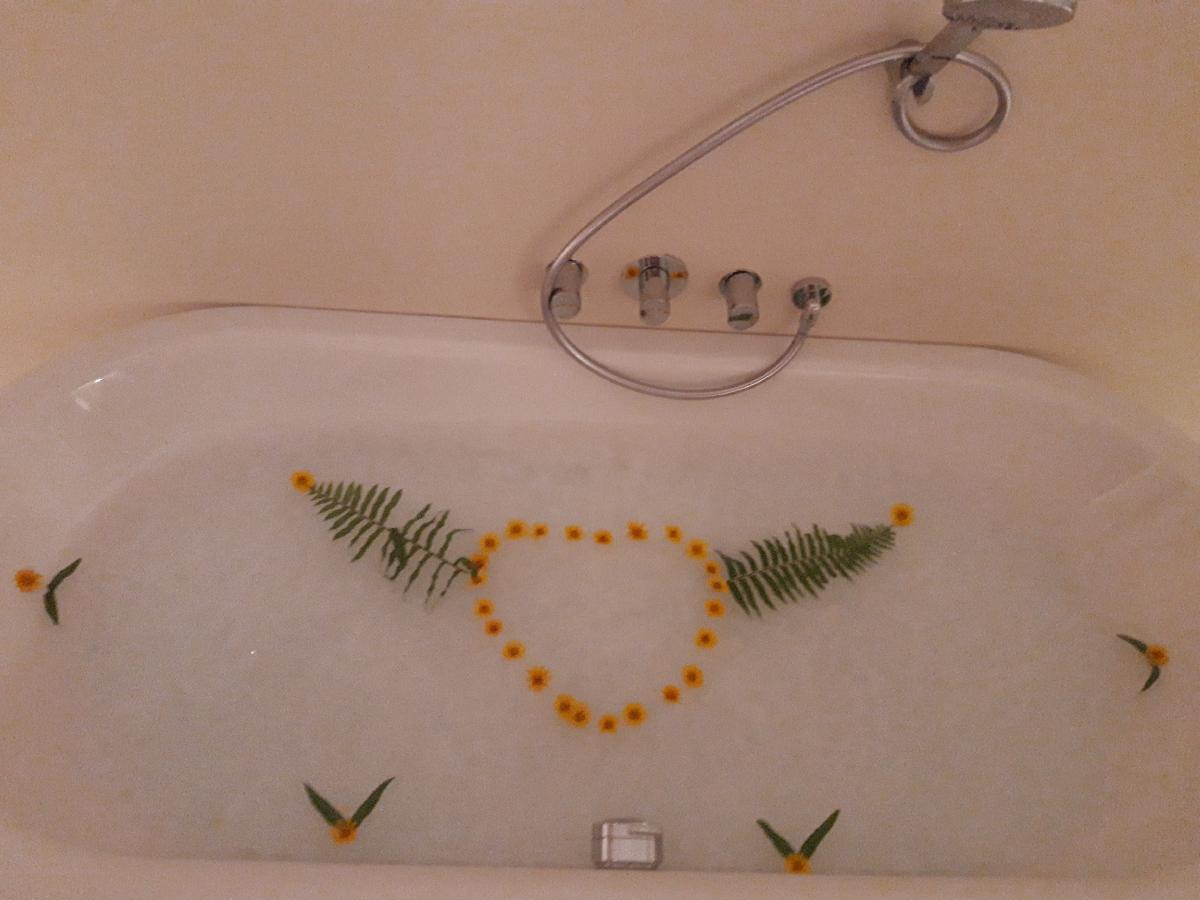 노란데이지 같은꽃으로 욕조에 장식도 해주시고 프로포즈이벤트 받은것같아 감동감동~~>_<!!