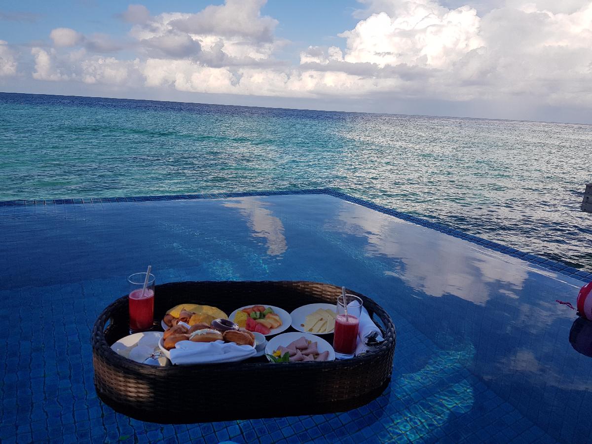 몰디브에 모히토도있지만 워터풀빌라에 플로팅조식도 한몫합니당 ㅎㅎ 보이는 곳이 다 그냥 완젼 그림이에요 ㅜㅜ