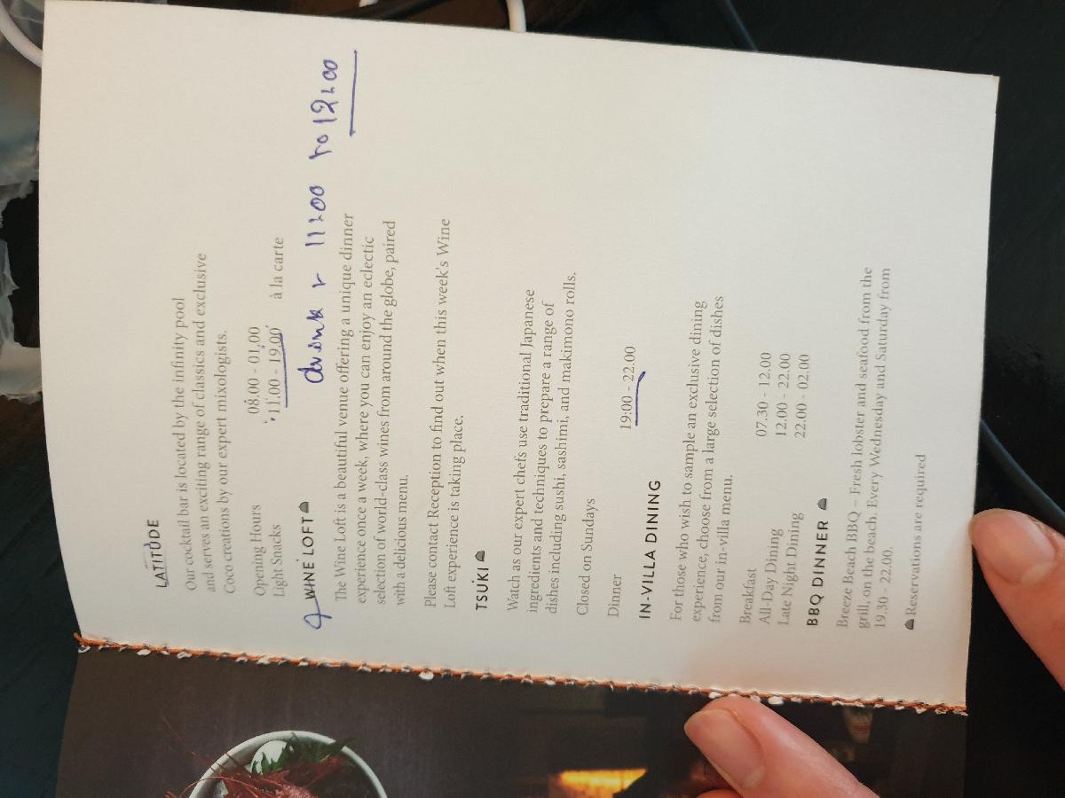 한국 시간 13시 == 몰디브시간 9시 == 해당 리조트 시간 10시