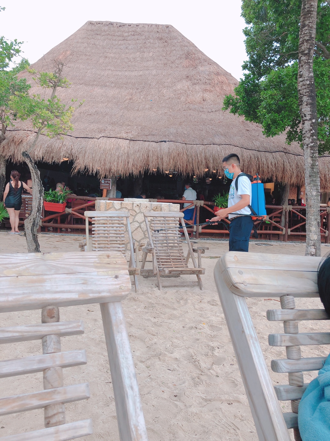 실내 직원, 야외 바에서 일하는 사람은 물론 투숙객까지요 ;)
