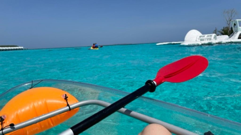 이후 곧바로 투명 패들보트를 타러 갔는데 1시간이라고 해서 첨엔 짧은가 싶었는데 절대 그렇지 않았어요. 패들을 한시간동안 휘두르면 팔 빠질 수도 있으니까요ㅋㅋ 대부분 20-30분 즐기고 나가는 것 같았어요. (투명 패들보트는 예약은 따로 필요없는데 30불 정도 별도로 차지되는 프로그램이에요!)