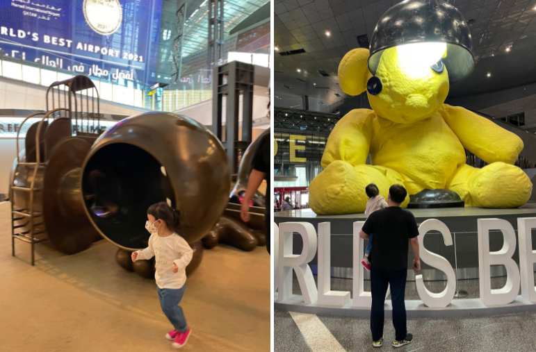 그리고 도하 왔으니 큰 곰인형 사진은 필수!( 말레가는 항공은 C 구역으로 이동해야해서 여기는 지나가게 되더라구요. 한국에서 내리는 곳은 A 구역입니다)