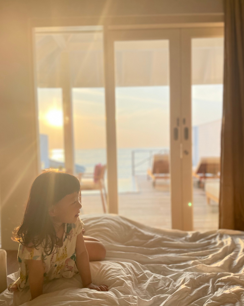 하지만 아기는 우리보다 먼저 뻗으셨기때문에 먼저 일어나셨습니다. 엄마 일어나 아침이야! 라고 하면서 우리를 깨우식던 분! 덕분에 숙소에서 몰디브의 일출을 맞이했습니다.
