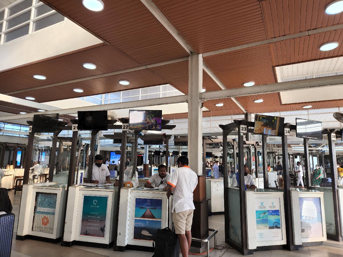 말레에 3시30분 도착했는데 국내선 타로 이동해서 2시간 또 대기하고 7시25분 국내선타니 정말 9시가 다되서... 요긴 말레공항가면 이렇게 리조트마다 부스가 있습니다