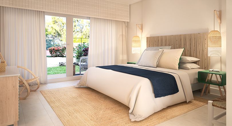 깔끔한 장식과 푸른 색조는 평화로운 분위기를 더합니다. 침대 헤드 및 침대 옆 테이블 용으로 짠 등나무, 편안한 안락 의자 및 천연 섬유로 만든 의자는 당신이 찾고있는 편안함을 한껏 배가 시켜 줍니다. |