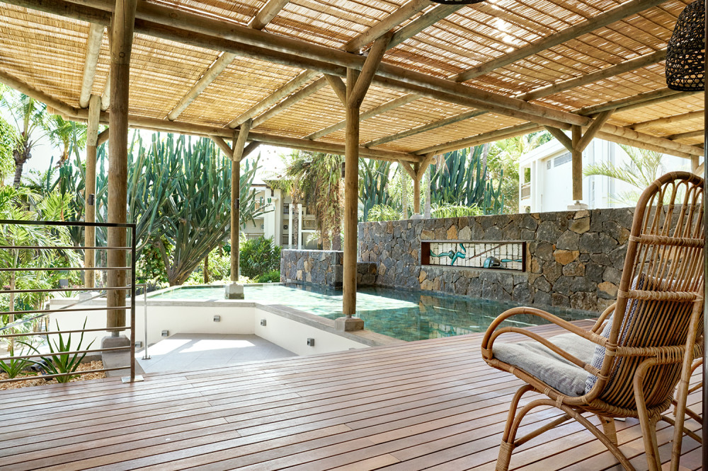 전형적으로 모리셔스의 건축물과 해변의 장식은 주변 자연과 조화롭게 어우러집니다. |