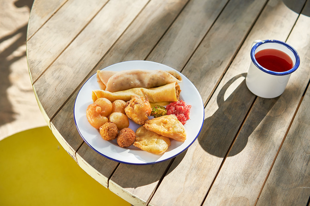 마을이나 해변에서 가장 일반적인 길거리 음식 카트와 같이 화려하고 재미있는이 레스토랑은 모리셔스 길거리 음식 인 rotis, dholl puri 및 gato arouille을 제공합니다. |