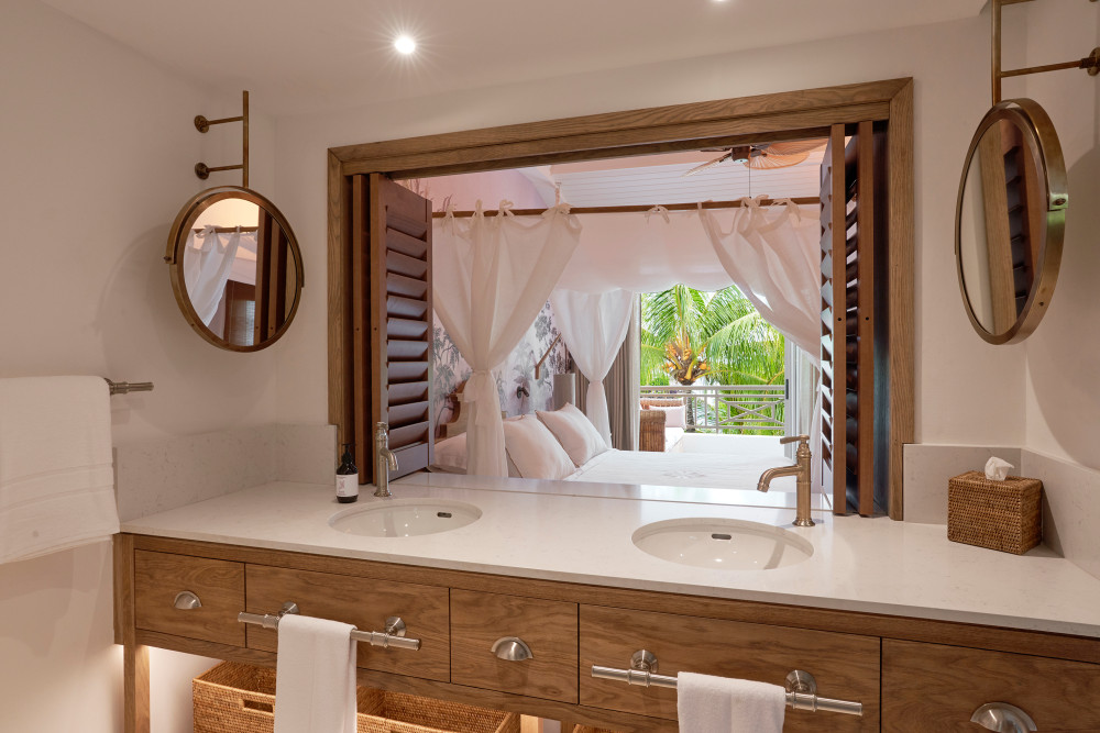프레스티지 주니어 스위트는 평화 롭고 밝습니다. 가벼운 나무 바닥과 가구, 등나무, 하얀 천장과 벽은 세련되고 따뜻한 분위기에 기여합니다. 4 포스터 침대 뒤의 아름다운 벽지는 주변 자연을 생각 나게 할뿐만 아니라 우리가 남쪽의 열대 섬인 모리셔스에 있는것을 다시한번 상기시켜 줍니다! 매우 편리한 객실 시설 : 찬장, 미니 바, 네스프레소 머신 등이 가장 편안한 숙박을 제공합니다. 욕실에는 더블 샤워 시설과 욕조가 있습니다. 주니어 프레스티지와 주니어 스위트는 아늑하고 편안한 라운지와 정원에 개방 된 사랑스러운 데크 플로어 테라스를 자랑합니다. 신중하고 웃는 스태프는 항상 기꺼이 도와주고 도와 줄 준비가되어 있습니다. |