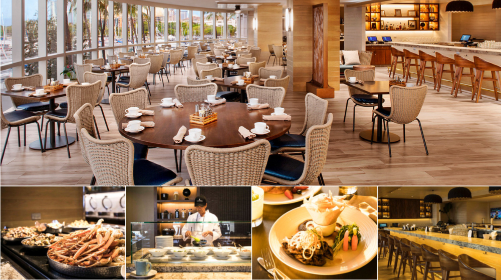 대형 창문을 통해 아름다운 바다를 바라보며 아침, 점심, 저녁 식사를 즐기실 수 있습니다. 레스토랑 중앙에 신설된 바에서는 한입 크기의 테이스팅 요리와 칵테일을 제공하고 있습니다. 주문 후에 조리되는 신선한 메뉴들입니다. |