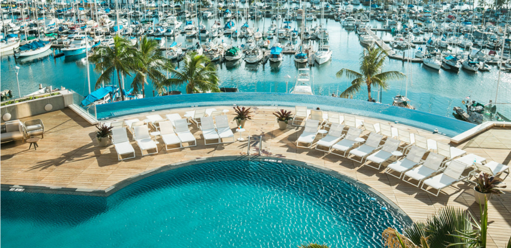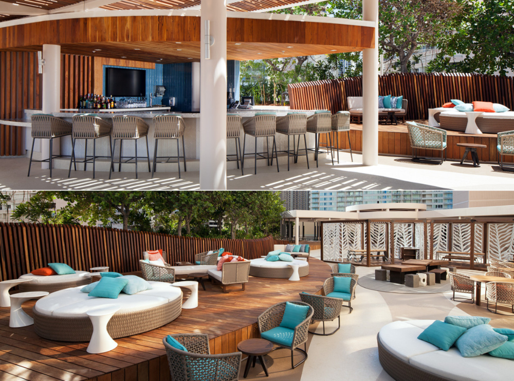 5층의 인피니티 풀에 위치한 히나나 바의 카운터에 앉아 상쾌한 하와이의 바람을 느끼면서 칵테일을 즐기실 수 있습니다. |