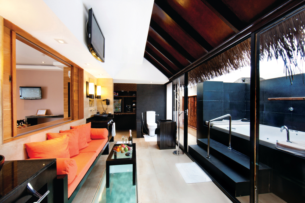 에어컨이 완비된 1층과 테라스 형태의 2층 구조로, 아름다운 남말레 아톨의 장관을 관람할 수 있습니다. |