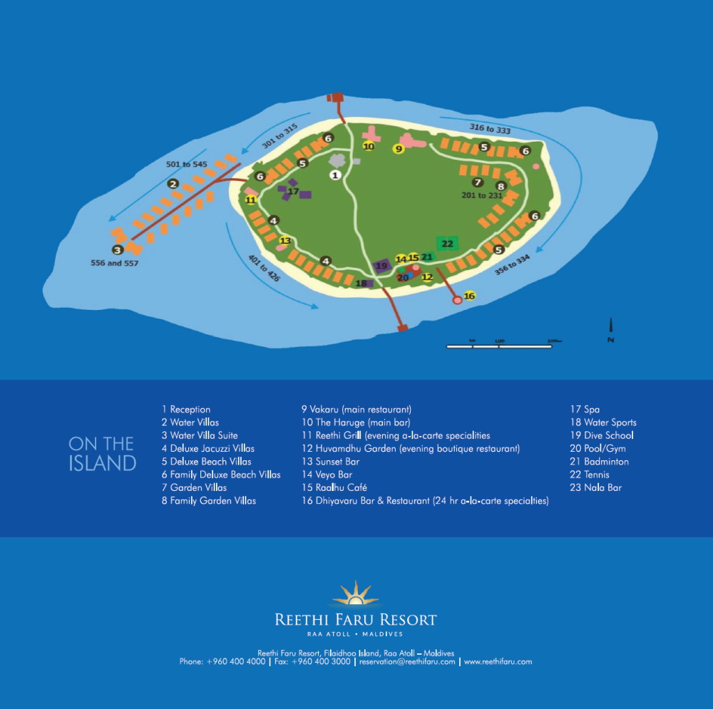 가로 600m, 세로 350m의 작지 않은 규모의 섬 크기에 걸맞게 104개의 비치타입 객실과 46개의 워터타입의 객실로 이루어져 있습니다. |