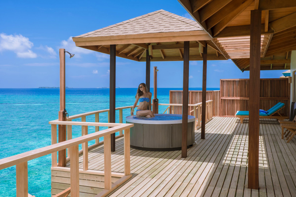 디럭스 비치빌라와 같은 구조와 시설을 갖추고 있으면서 실외 테라스에 로맨틱한 거품목욕을 즐길 수 있는 자쿠지 욕조가 추가로 구비되어 있습니다. |
