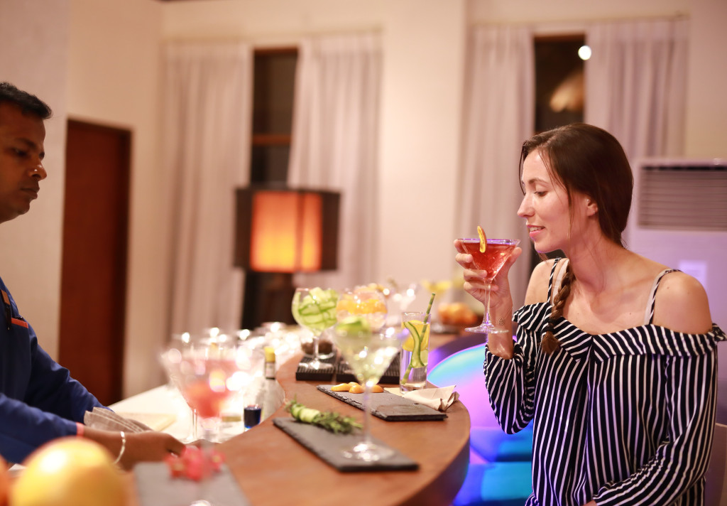 스타일리시한 트렌드세터인 OZEN LIFE MAADHOO는 2018년 5월 몰디브 최초의 독점 진 바를 오픈했습니다. 'Gin Is In'에서 이름이 모든 것을 말해줍니다: 일몰 시간 성인 전용 바(오후 5시부터 오후 11시까지 영업)는 18세 이상 다양한 종류의 강장제와 함께 다양한 허브, 유기농 및 이국적인 풍미를 제공하는 희귀하고 정교한 진 브랜드. |