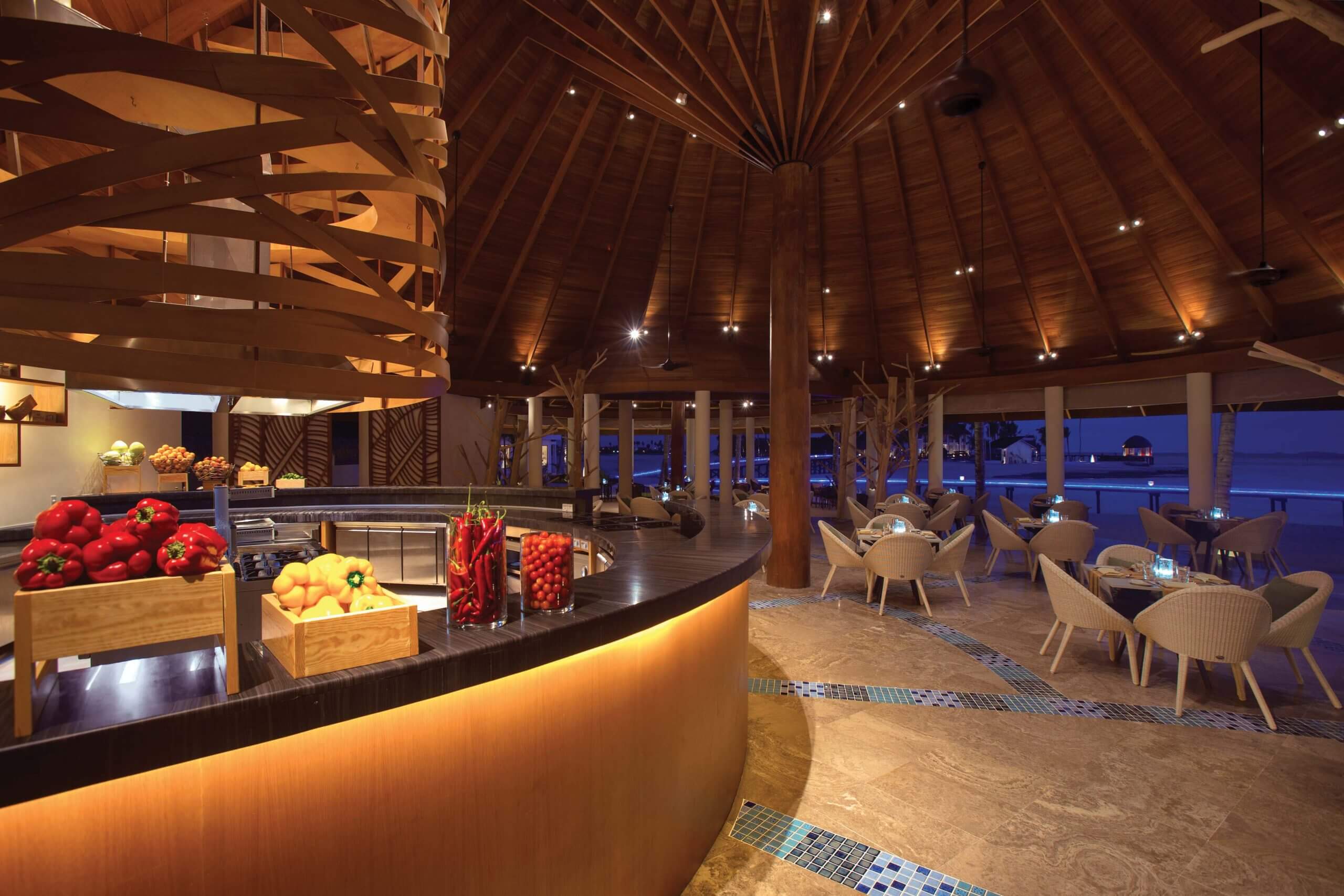 OZEN LIFE MAADHOO의 심장! 탁 트인 바다 전망을 자랑하는 팜스는 높은 천장과 생기 넘치는 인테리어가 돋보이는 탁 트인 공간입니다. 아침, 점심, 저녁 시간에 영업하는 레스토랑은 세계 각국 의 맛있는 요리와 미식의 즐거움을 다양하게 제공합니다 ! |