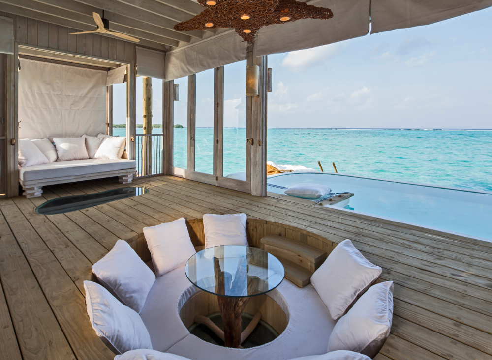 총 25채의 한정적인 객실을 보유하고 있으며, 기본 룸타입인 One-Bedroom Water Retreat을 18채 보유하고 있습니다. 이 중 10채는 워터 슬라이드를 갖추고 있으며 무려 그 크기가 125평에 이릅니다. 전 객실에서는 13미터 길이의 초대형 개인풀을 이용할 수 있으며, 자동으로 개폐되는 천장을 통해 누워서 인도양의 쏟아지는 별빛을 바라보실 수 있습니다. |
