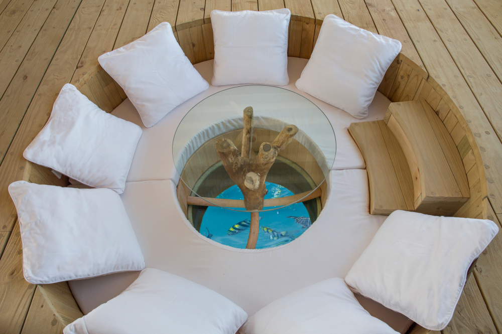 버틀러 서비스 | TV & 사운드 시스템 | 오픈에어 욕실과 화장실 & 다이렉트 라군 엑세스 | 모든 손님을 위한 개인 자전거 | 개인 수용장 과 catamaran net | Overwater basket swing seat | 미니바, 에스프레소 머신, 개인 와인 셀러 | 객실 내 금고 | 에어컨디션과 팬 | 선라운지와 데크, 다이렉트 라군 억세스 | 3군데의 거실공간 : 데크 sunken table, 객실내 거실, 지붕위 테라스 dining sala |