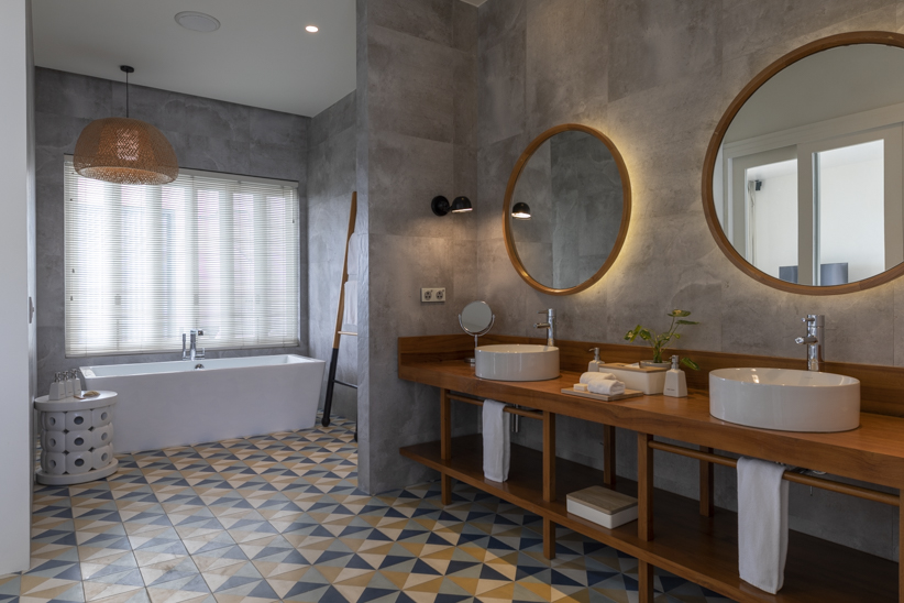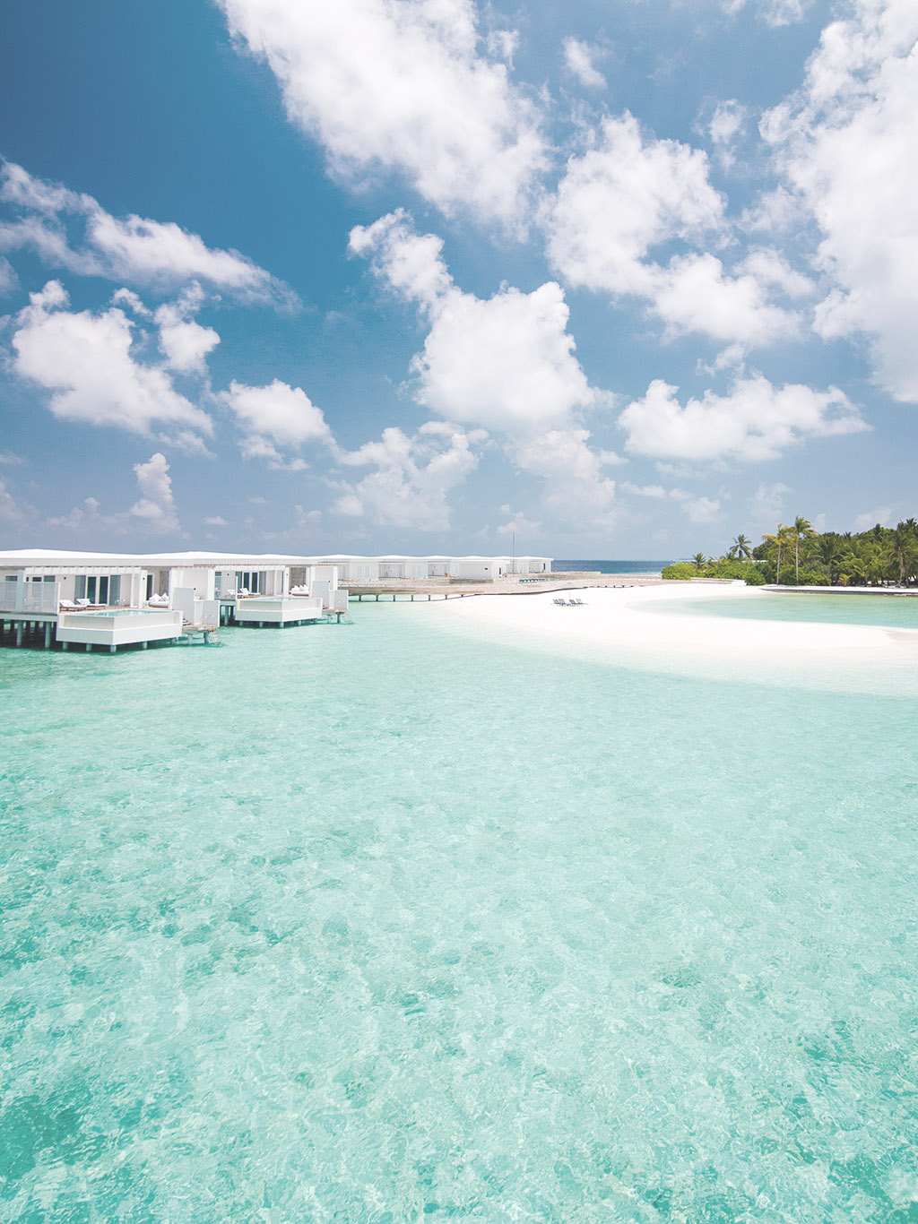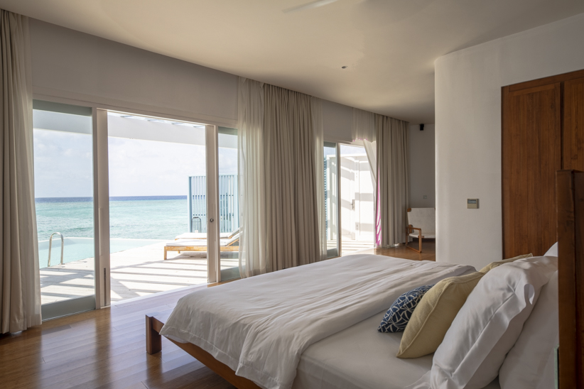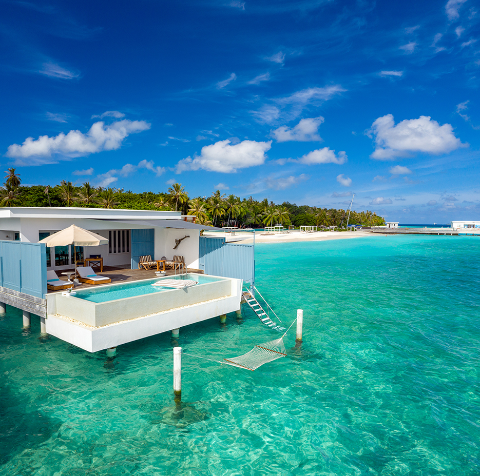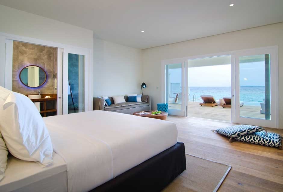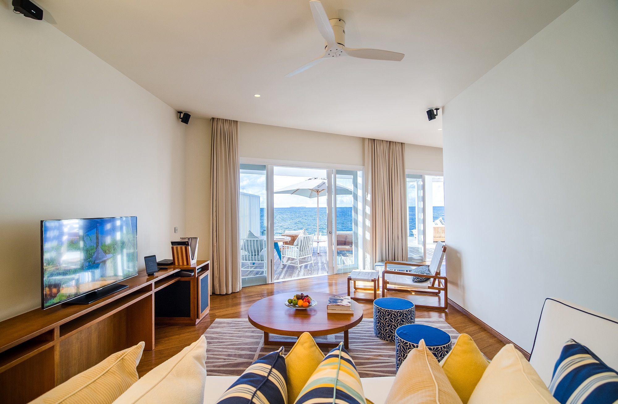 4m 길이의 담수 수영장과 2인용 깊은 세라믹 욕조로 몰디브 올 인클루시브 워터 빌라에서 로맨스의 무대를 마련했습니다. 몇 초 만에 암초에 도달할 수 있는 스노클링 중독자에게도 완벽합니다.특이한 객실 구조와 오픈형 욕실이 돋보입니다