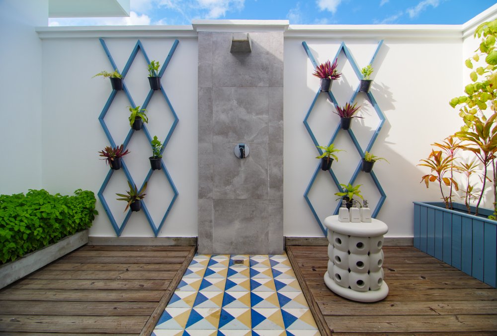 한켠에는 넓은 정원 같은 오픈에서 샤워시설까지 갖추고 있습니다 |